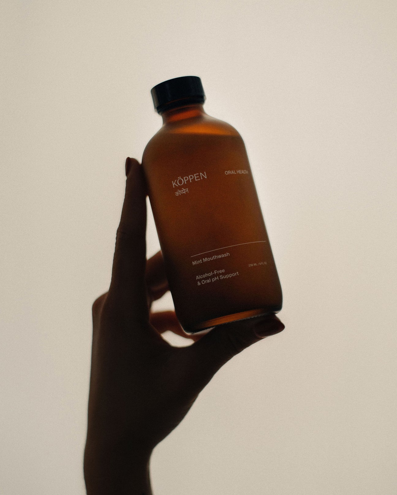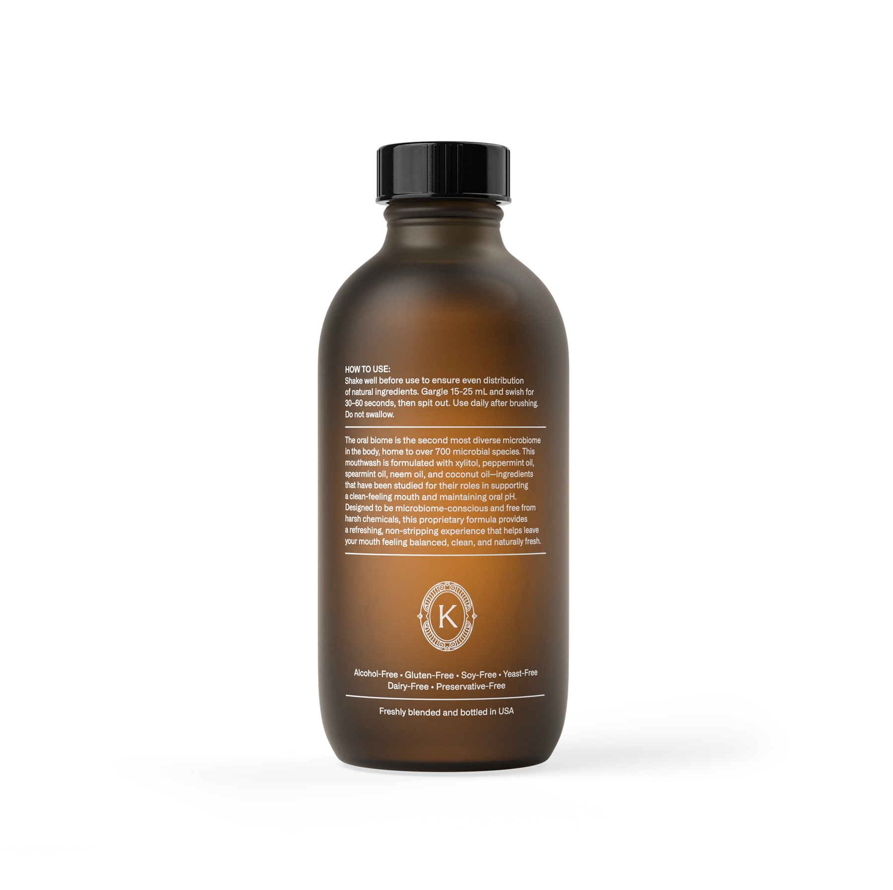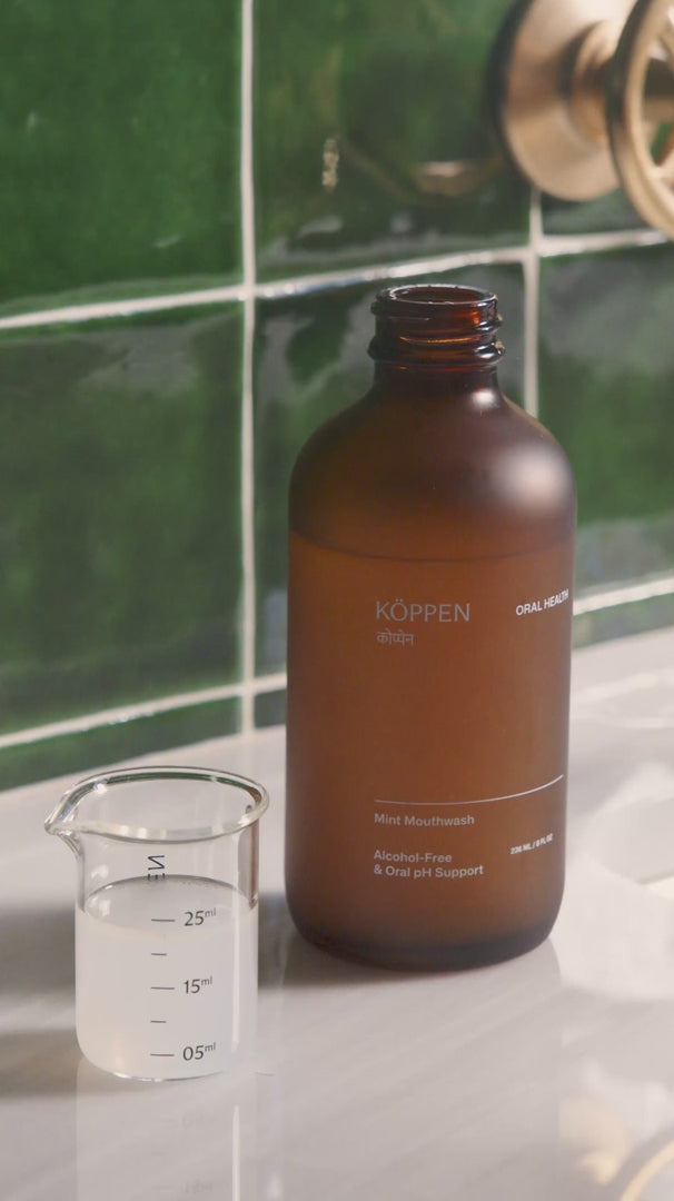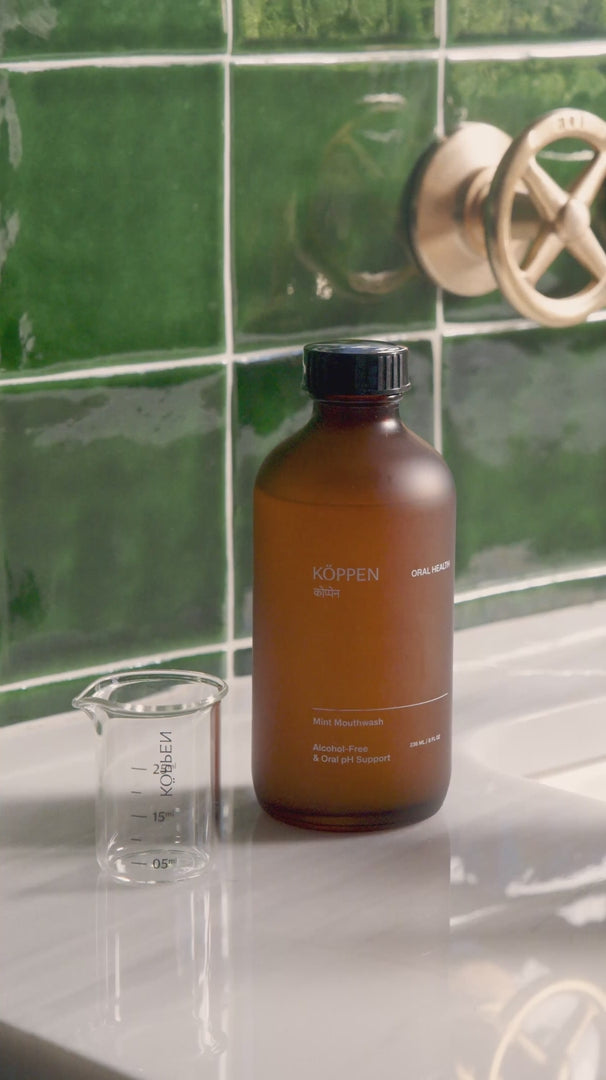 KÖPPEN Mint Mouthwash is formulated with plant-derived oils, xylitol, and gentle cleansing agents to freshen breath while supporting your oral balance rather than overwhelming it.