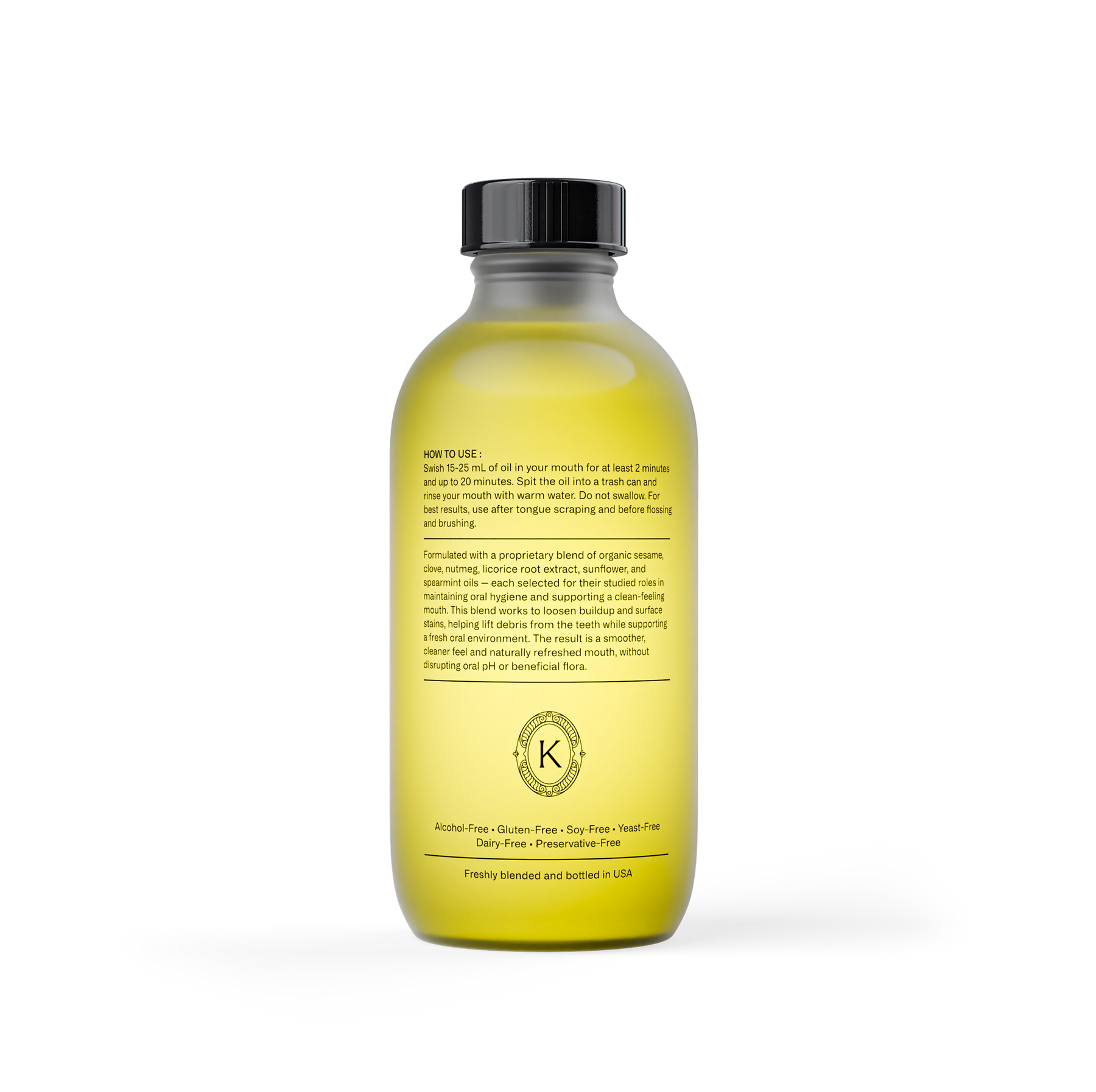 Oil pulling is a traditional oral cleansing practice that supports balance within the mouth. As oil is swished, its lipid-rich structure helps bind to plaque, bacteria, and biofilm—loosening buildup ahead of brushing or flossing.