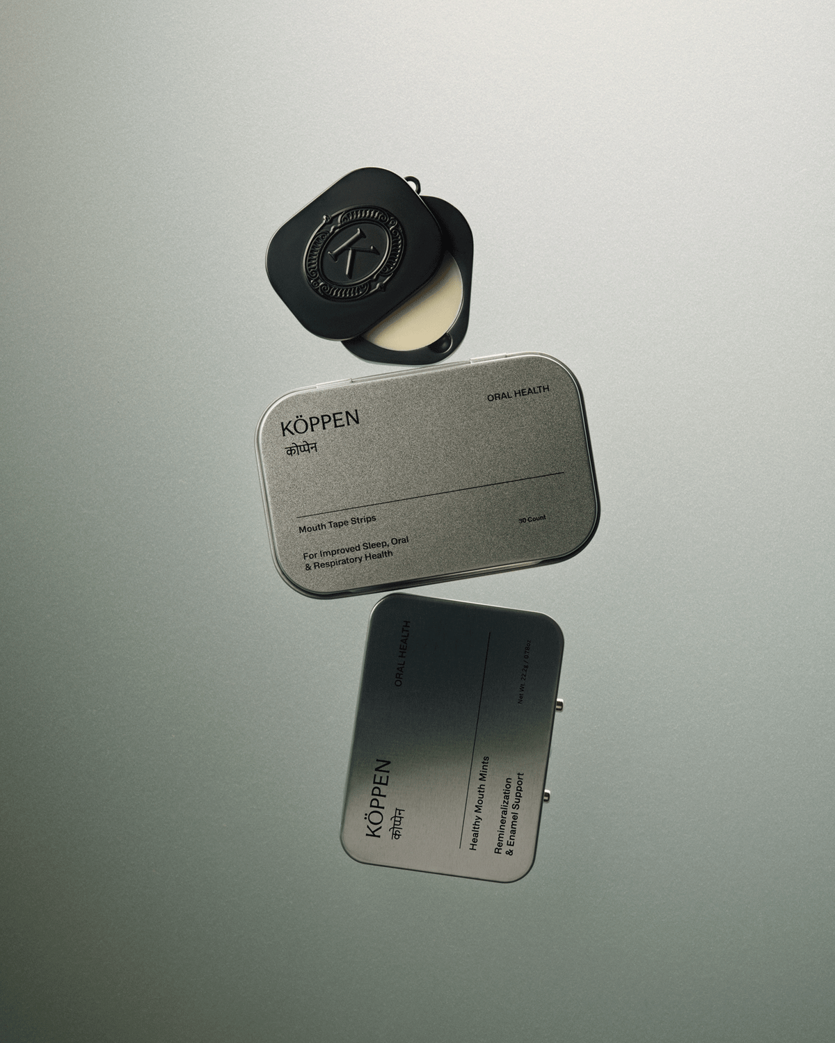 The KÖPPEN Support Set extends the benefits of your oral care routine into the hours between brushing — and through the night. It supports hydration, enamel remineralization, and nasal breathing, addressing the parts of oral health that happen away from the sink and outside of your standard morning and evening routine.